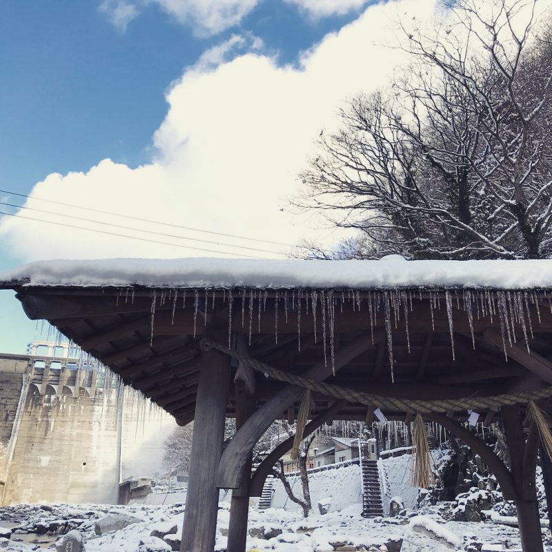 Yuhara Onsen - Nostalgic scenery in the Winter, Frost and white white all around. This is just in front of Hakkei, our guests have pleasure view from dinning hall, and also from the room`s gallery. Yubara is more exciting but the air is clean and the blue sky is wonderful.