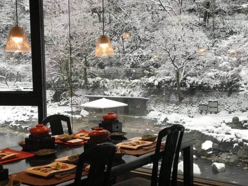 This Winter, beautiful Open Air Hot Spring view from `Hanaguruma` dinning hall.