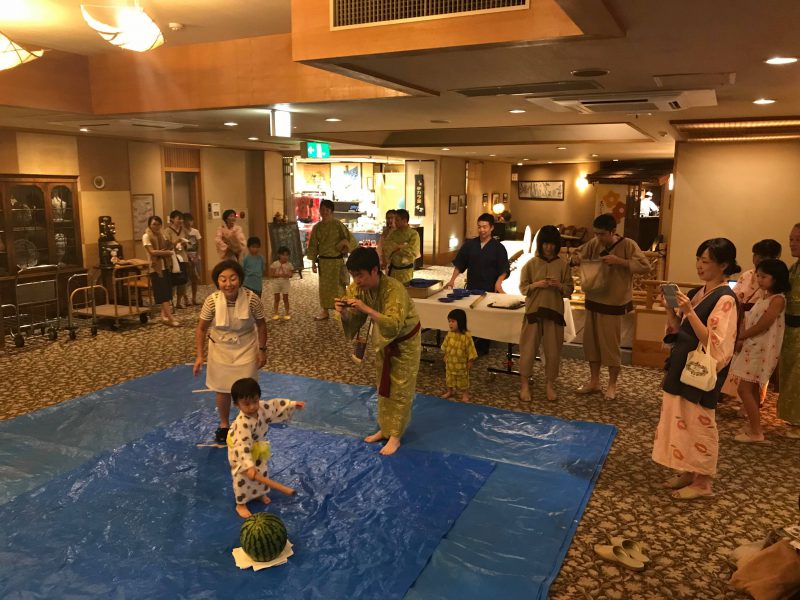 Suikawari (meaning watermelon splitting) is a traditional Japanese game quite large in Japan in the summer months. Watermelon Splitting is a traditional Japanese game of watermelon splitting with a stick while blindfolding.