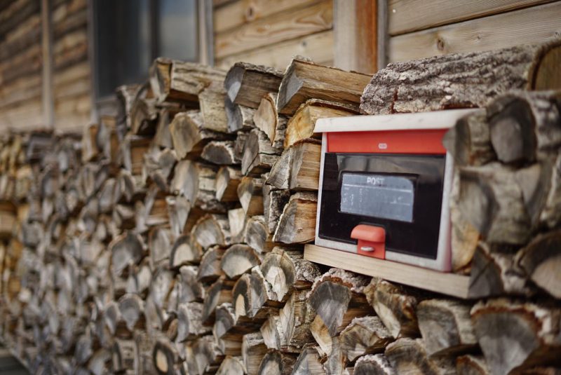 個人的に好きたっだのは、ロッジの周りに薪が積まれているところ。ポストも薪の中に紛れ込んでいました。