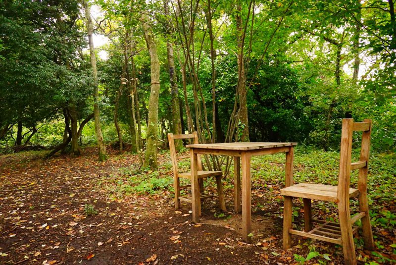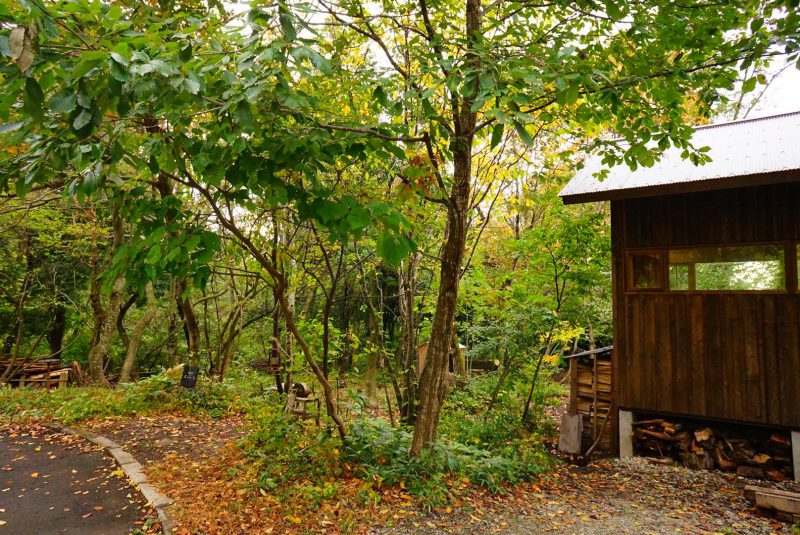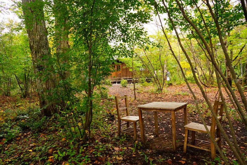 森に入っていくと、お店の少し奥に木の椅子とテーブルがおいてある。天気のいい日はここでスープを味わうこともできるそう。大自然を前に…ではなく、大自然の中でリラックスできる環境は都会ではなかなか味わえない極上なロケーション。