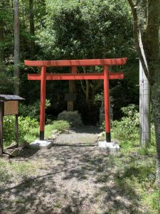 その中にひっそりと、赤い鳥居が。その奥に二つの祠が並んでおります。