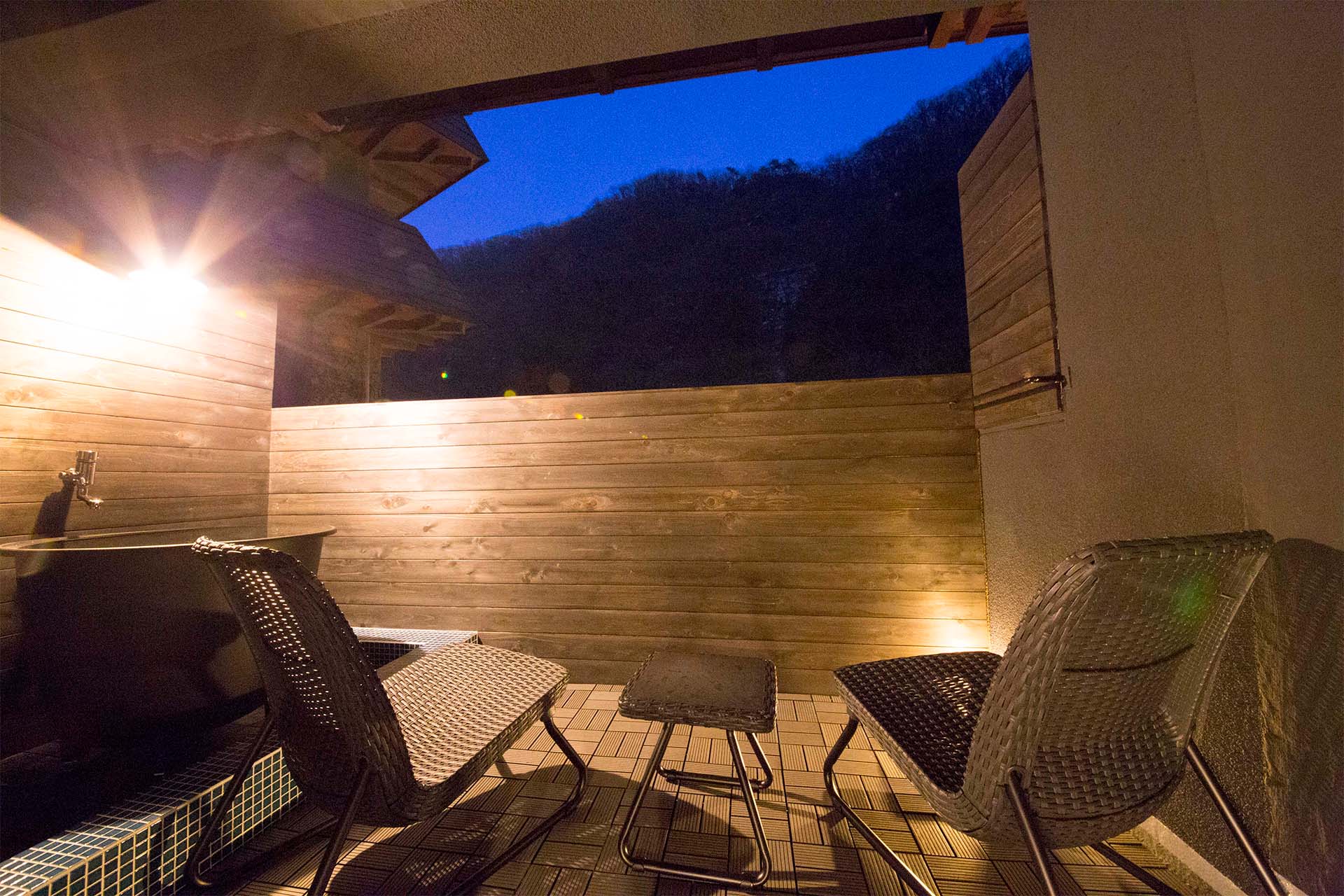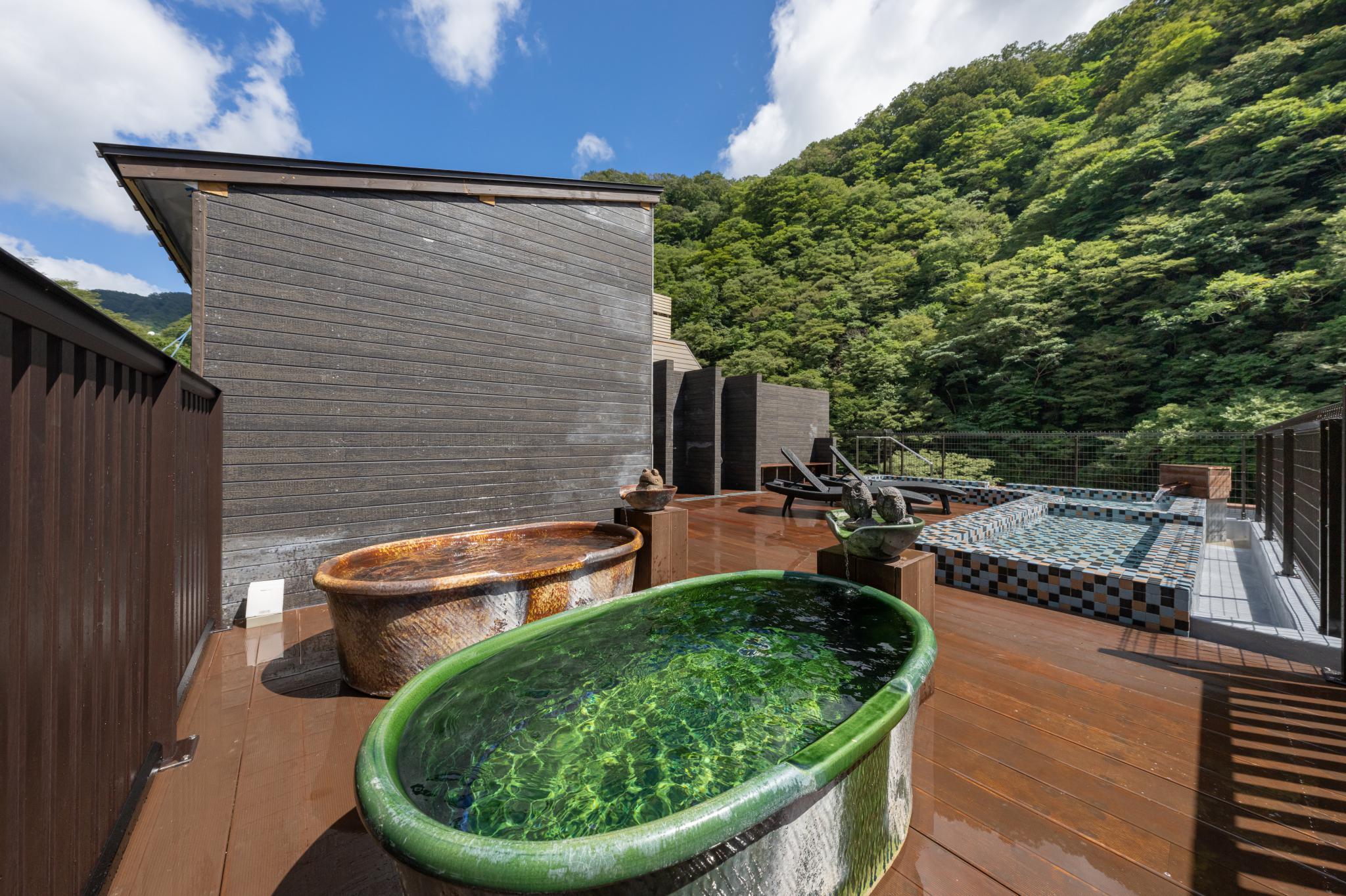 山と空に近い空の湯では葉の香りや星空をお楽しみくださいませ。